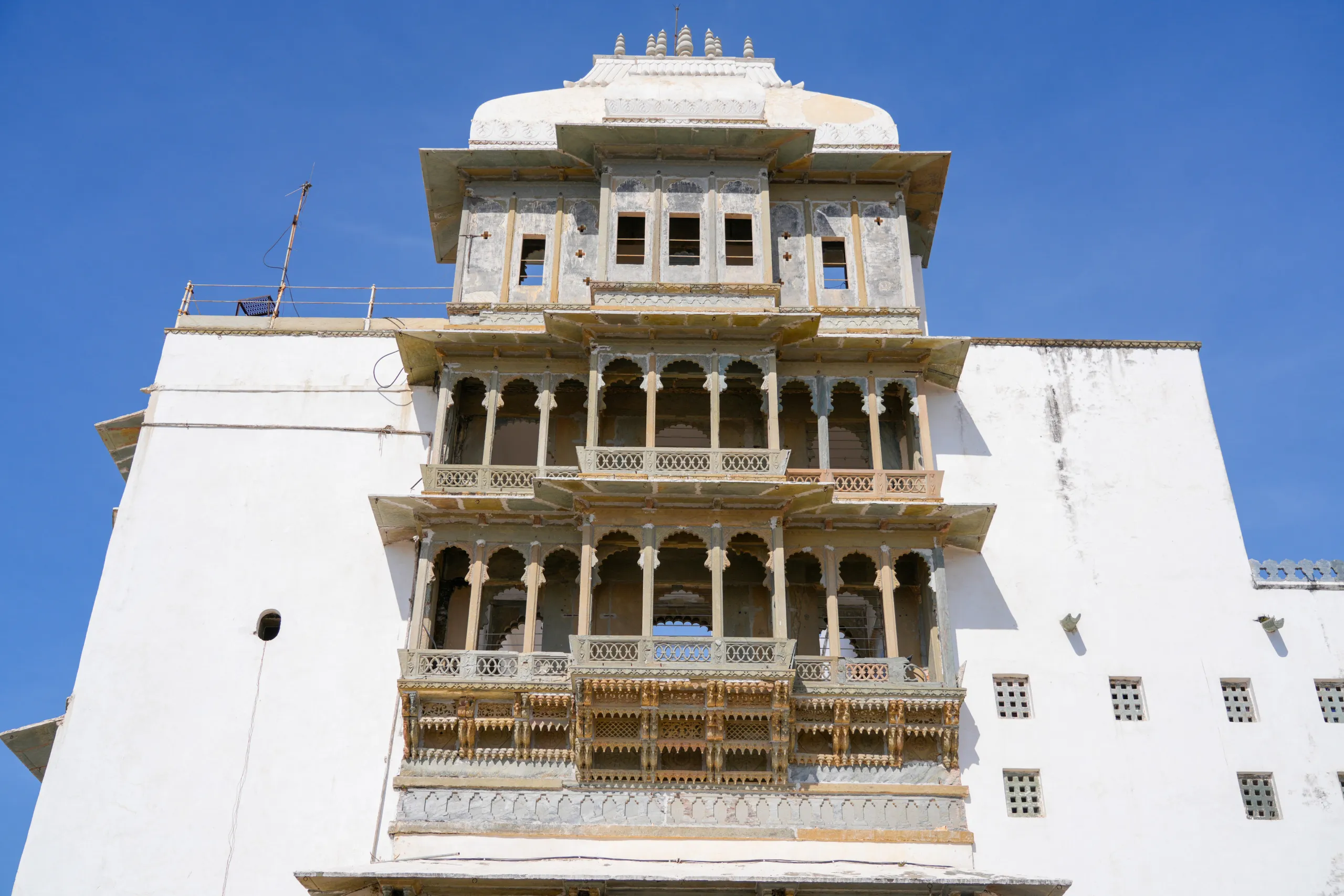 Even a single exterior wall or balcony can say a lot about the city’s design style. The old facade with layered windows, carved edges, and pale surfaces shows the elegance that still lives in Udaipur’s historic architecture.